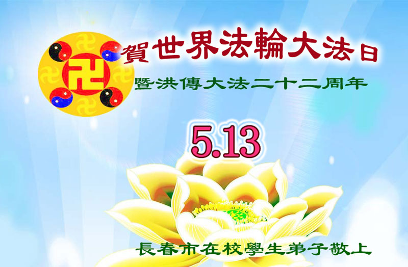 吉林省长春在校学生大法弟子贺世界法轮大法日暨师尊洪传大法二十二周年!