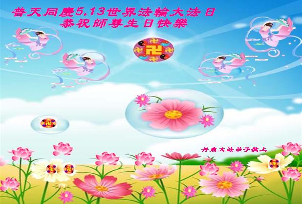庆贺五一三 年年有个五一三 欢乐满人间 主佛下世把金散 有缘之士读金篇 年年有个五一三 天地大改观 正邪较量必全胜 法正人间在眼前 庆贺年年五一三 师教弟子来修炼 修炼前后两重天 大法弟子换新颜 有幸今生得大法 我没白来人世间 信师信法再精進 师徒美名天下传 永远记住五一三 正法救人最关键 用尽长江黄河水 写不尽感谢师恩的语言 别忘年年五一三 师父承受巨大的难 为救众生出苦海 师恩浩荡法无边 辽宁省凤城市通远堡大法弟子恭祝师尊生日快乐!