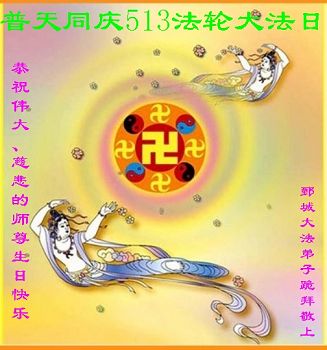 山东省菏泽市鄄城县全体大法弟子恭祝慈悲伟大的师尊生日快乐!同庆5.13世界法轮大法日!