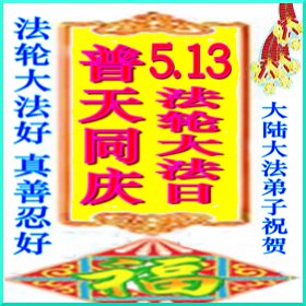 大陆大法弟子普天同庆5.13世界法轮大法日!恭祝慈悲伟大的师尊生日快乐!