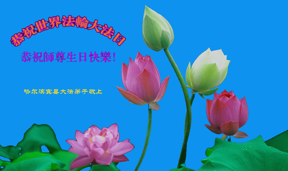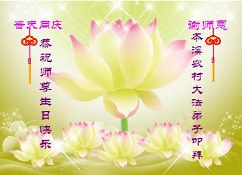 在世界法轮大法日即将到来之际,丹东农村大法弟子恭祝慈悲伟大恩师生日快乐! 河北省唐山市唐海县农村大法弟子一学法小组全体学员恭祝师尊生日快乐!
