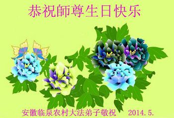 【明慧网二零一四年五月十日】 辽宁本溪农村大法弟子叩拜师尊!恭祝师尊生日快乐!