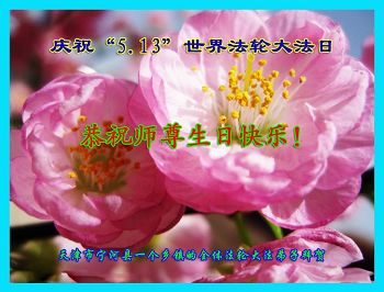 庆祝513世界法轮大法日,普天同庆! 山东省烟台市招远市金玲镇农村全体大法弟子恭祝慈悲伟大的师父生日快乐!