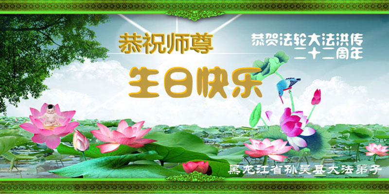 黑龙江省黑河市孙吴县大法弟子恭祝伟大师尊生日快乐!恭贺法轮大法洪传二十二周年!
