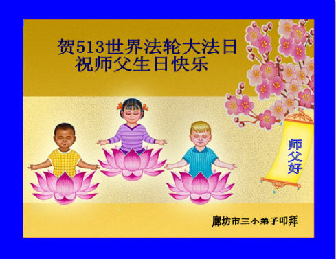 河北省廊坊三大法小弟子贺5.13世界法轮大法日!祝师父生日快乐!