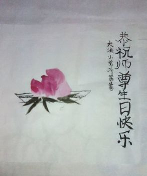 春天来了,鲜花盛开。我们盼望的盛大节日──世界法轮大法日到来了,同时我们迎来了慈悲伟大的师尊63岁华诞。我们江苏大法小弟子在分享着节日快乐的同时,更分享着如同阳光一样的灿烂佛光,佛光温暖着我们的心,让我们感到快乐、幸福。师尊为救度众生、救度弟子付出了无比的艰辛。我们小弟子在师尊的呵护下快乐的成长。我们一定听师尊的话,以法为师,做好三件事,做一个合格的大法小弟子,圆满随师尊回到自己天上真正的家。奉上我的《国画●仙桃献寿》,恭祝师尊生日快乐!江苏大法小弟子善善(10 岁)叩拜! 内蒙古自治区赤峰大法小弟子祝师尊生日快乐!