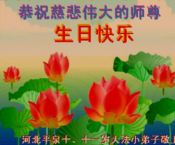 【明慧网二零一四年五月十一日】 河北平泉十、十一岁大法小弟子恭贺5﹒13世界法轮大法日!恭祝慈悲伟大的师尊生日快乐!