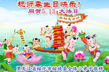 黑龙江省绥化市绥棱县全体大法小弟子恭祝师尊生日快乐!恭贺世界法轮大法日!