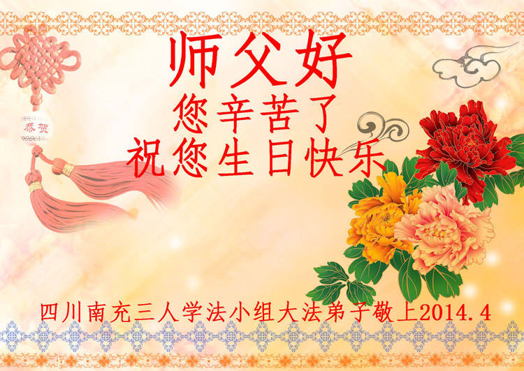 四川南充三人学法小组大法弟子恭祝慈悲伟大的师父生日快乐!