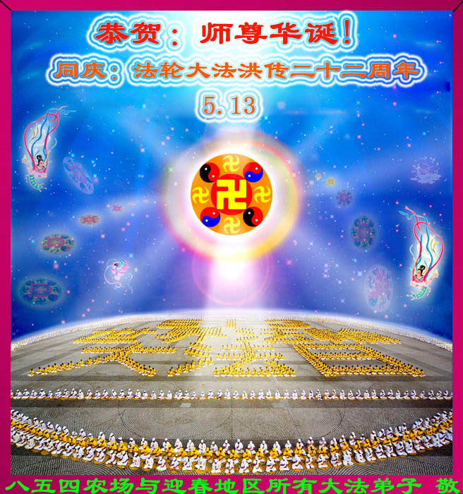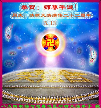 八五四农场与迎春地区所有大法弟子恭贺师尊华诞!同庆法轮大法洪传二十二周年!