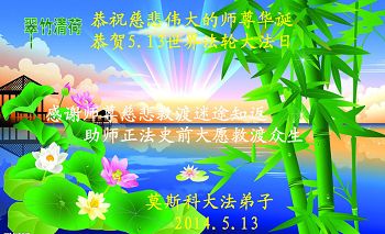 【明慧网二零一四年五月十一日】 齐哈尔大法弟子恭祝慈悲伟大的师尊生日快乐!普天同庆世界法轮大法日!