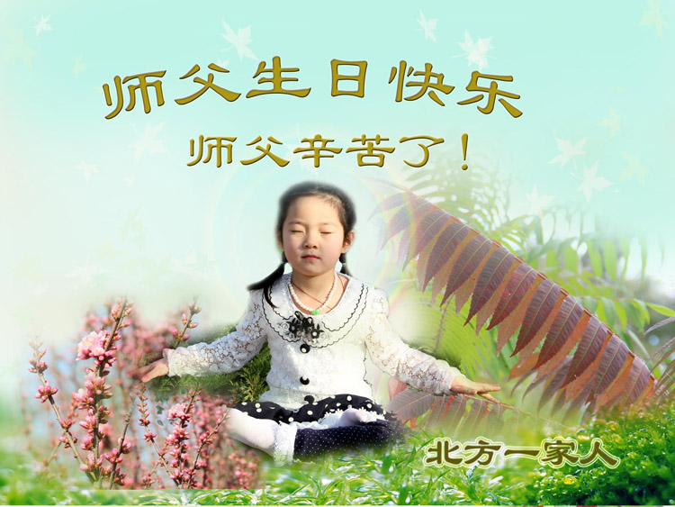 谢谢师父!谢谢师父!师父辛苦了! 大陆两位大法弟子全家恭祝师尊生日快乐!