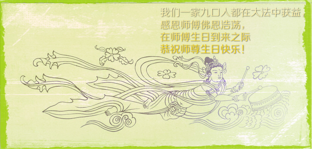 感谢师尊慈悲救度!弟子一定会努力做好三件事,修好自己,讲真相多救人。 大陆青年大法弟子恭祝师尊生日快乐!
