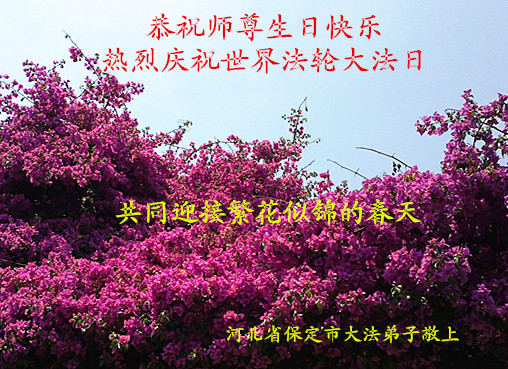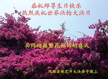 河北省保定市大法弟子恭祝师尊生日快乐!热烈庆祝世界法轮大法日!