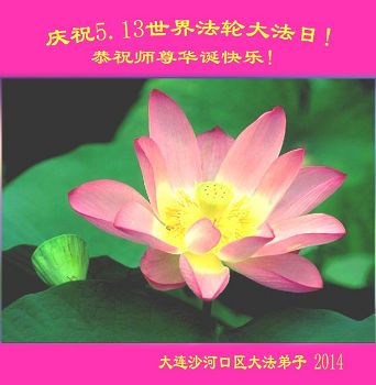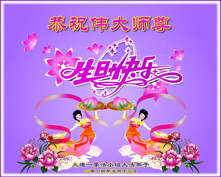 【明慧网二零一四年五月十一日】 辽宁省大连市沙河口区一学法小组全体大法弟子恭祝伟大的师尊生日快乐!师尊您辛苦了!