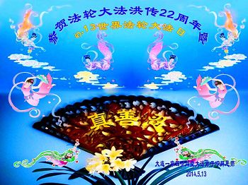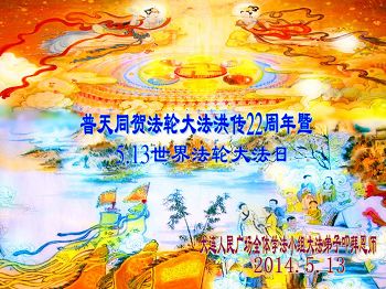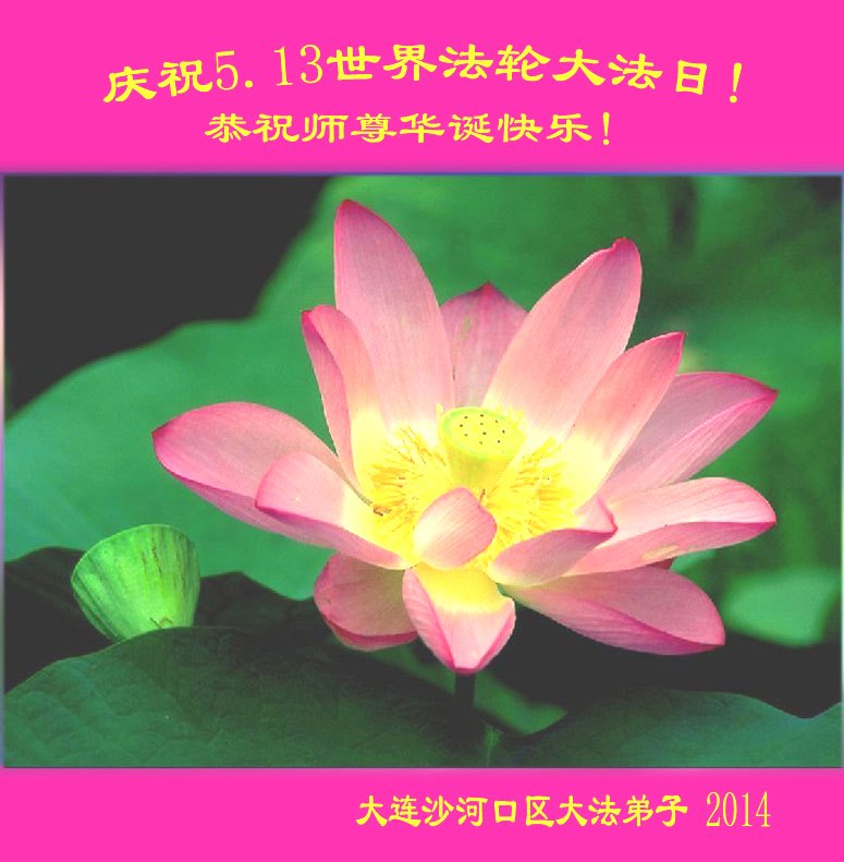 庆祝5.13世界法轮大法日并恭贺师尊传法二十二周年! 2014年5月 辽宁省大连一家九口大法弟子恭祝世界法轮大法日!