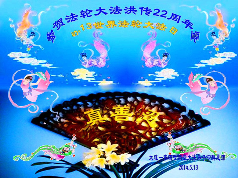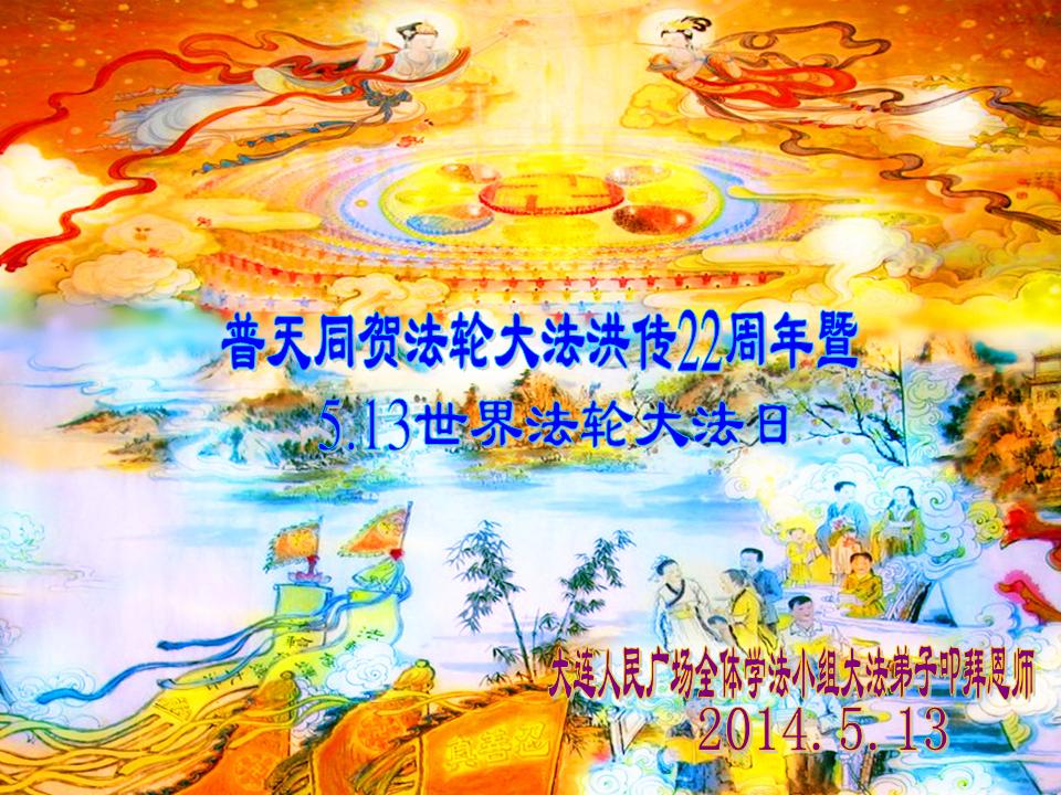 辽宁省大连大法弟子恭祝伟大的师尊生日快乐!祝贺五月十三日第十五个法轮大法日!