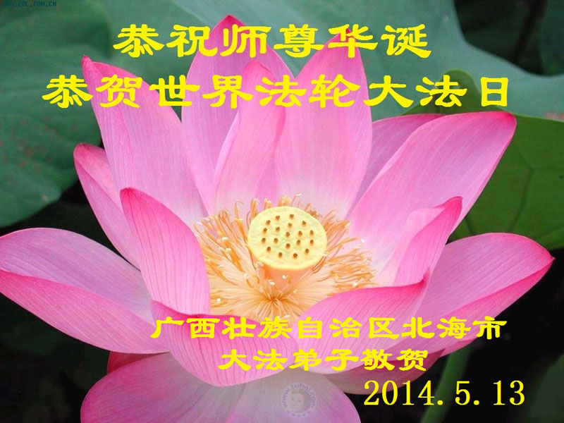 广西北海市大法弟子恭贺慈悲的师尊生日快乐!庆祝世界法轮大法日!