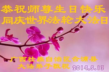 广西壮族自治区合浦县大法弟子恭祝师尊生日快乐!同庆世界法轮大法日!