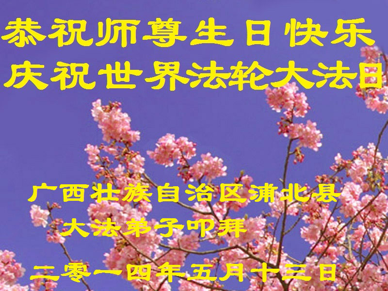 广西壮族自治区浦北县大法弟子恭祝师尊生日快乐!庆祝世界法轮大法日!