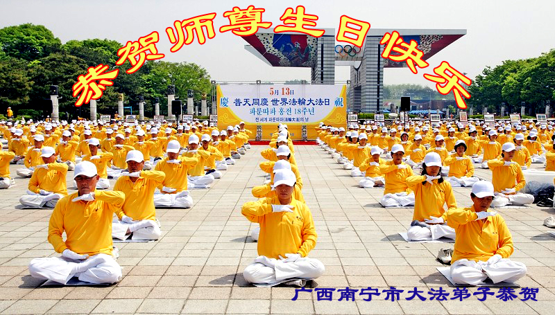 广西南宁市大法弟子恭贺师尊生日快乐!普天同庆世界法轮大法日!