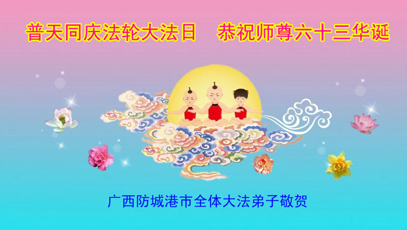广西防城港市全体大法弟子庆贺513世界法轮大法日!恭祝师父生日快乐!