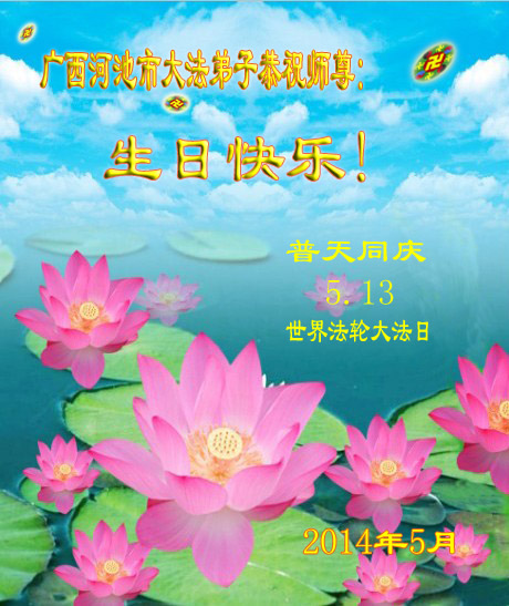 广西河池市大法弟子恭祝慈悲伟大的师尊生日快乐!庆贺5.13世界法轮大法日!