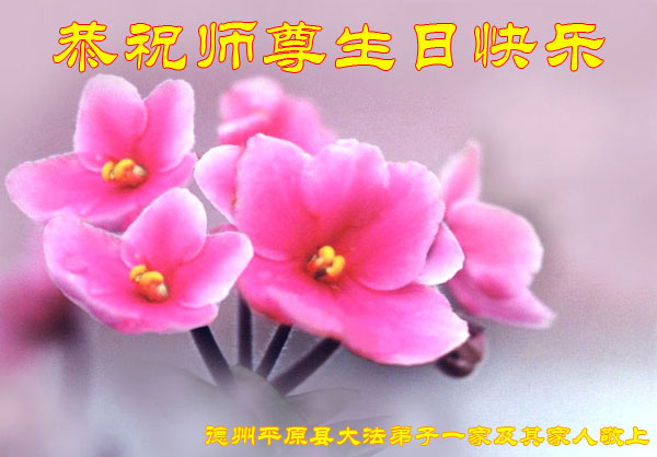 【明慧网二零一四年五月十一日】 山东省德州市平原县全家大法弟子及家人恭祝师尊生日快乐!祝贺法轮大法日!