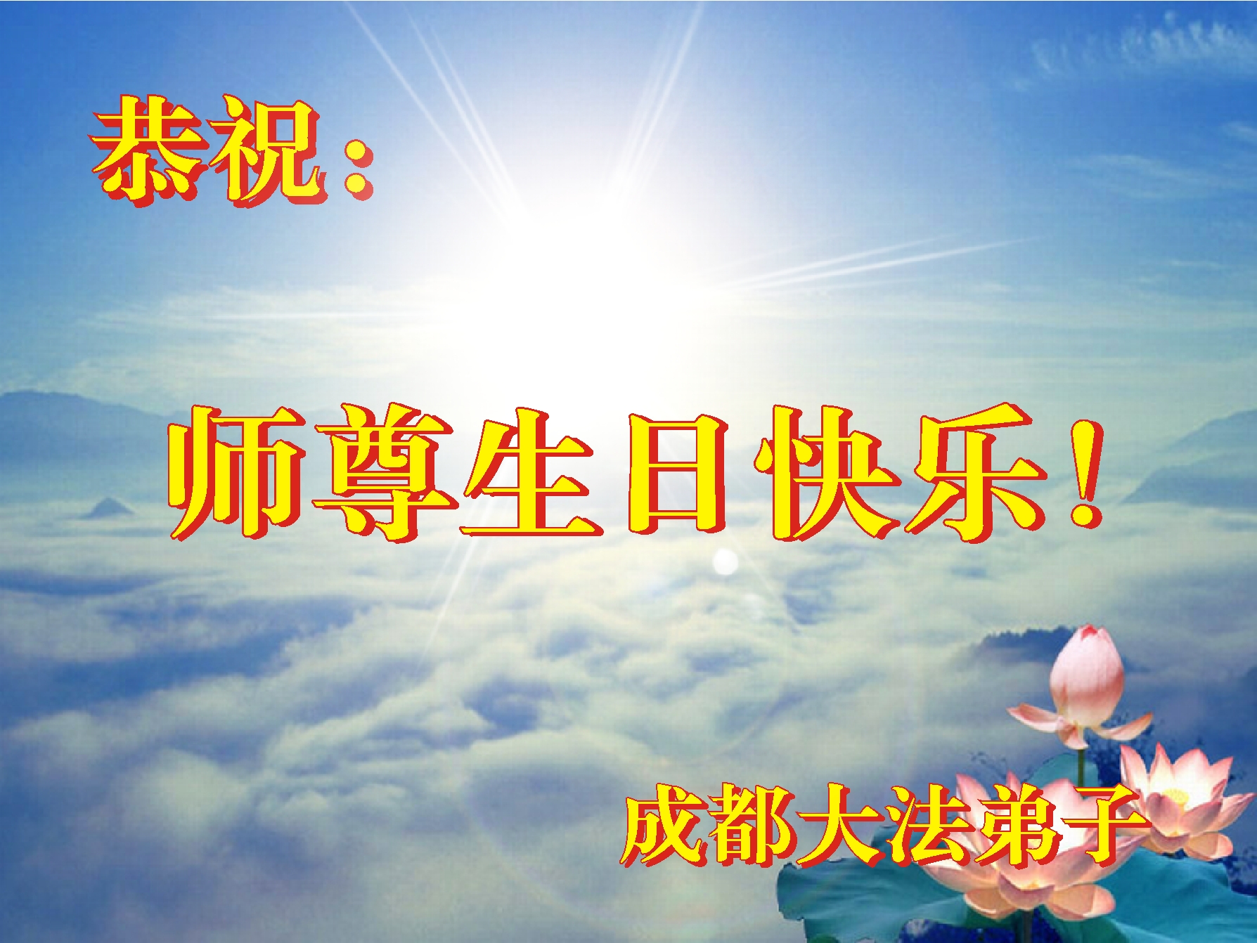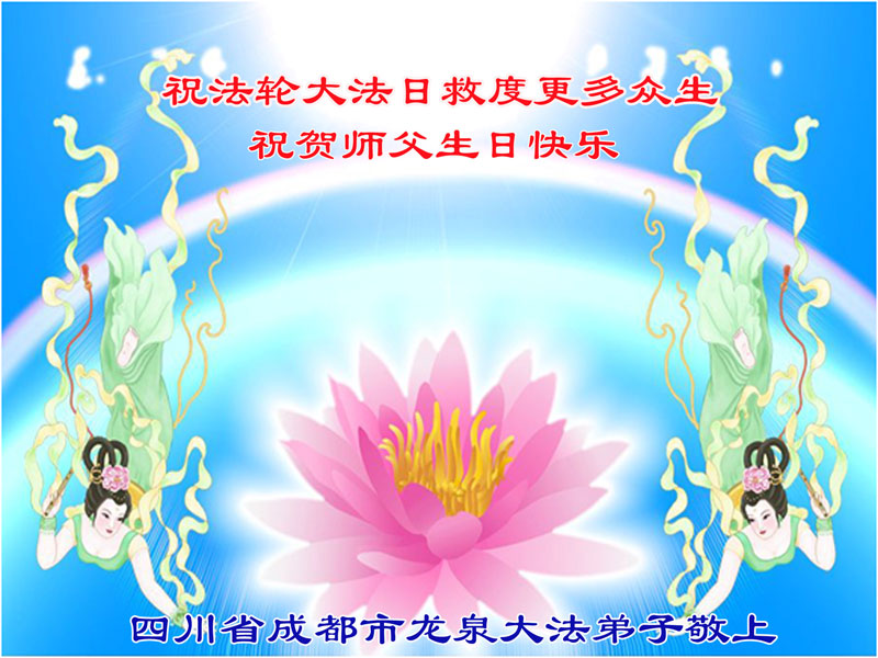 四川省成都一大法弟子恭祝慈悲伟大的师尊生日快乐!