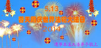 【明慧网二零一四年五月十一日】 辽宁本溪溪湖全体大法弟子敬祝师尊生日快乐!