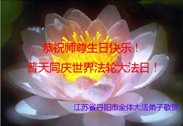 江苏镇江市大法弟子恭祝慈悲伟大的师尊生日快乐!