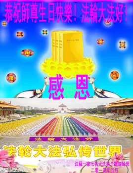 江苏省明真相世人敬贺法轮大法好!祝法轮功师父生日快乐!