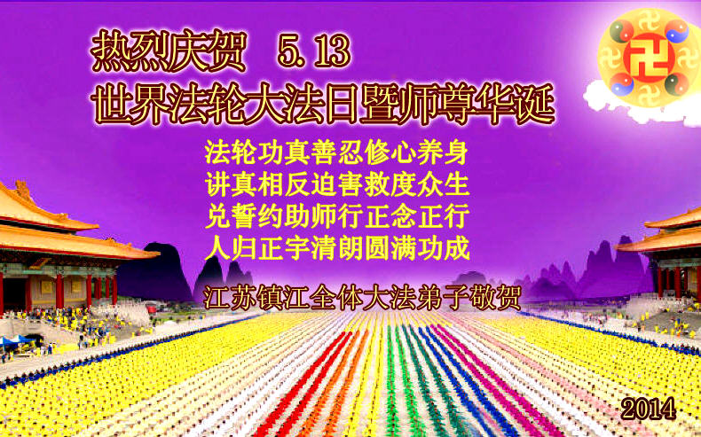 江苏镇江大法弟子恭贺师尊华诞暨5.13世界法轮大法日!