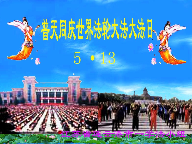 祝贺五月十三日世界法轮大法日暨法轮大法洪传二十二周年! 江苏省连云港市一学法小组恭祝师尊生日快乐!