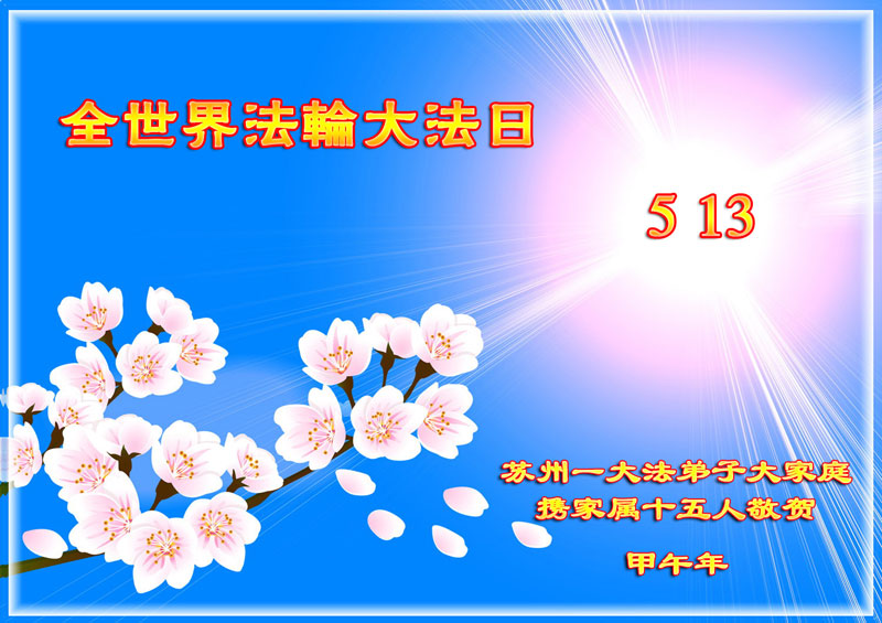 弟子努力做好三件事,跟师尊早日回家。 江苏省苏州一大法弟子大家庭携家属十五人敬贺法轮大法日!
