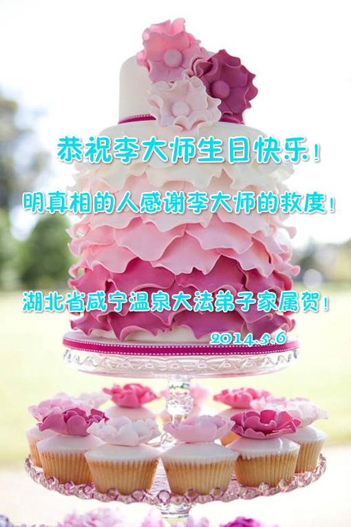 我们向慈悲伟大的师父问好,恭祝师父生日快乐!恭贺世界法轮大法日! 湖北武汉大法弟子及全家敬上 合十 2014年5月4日