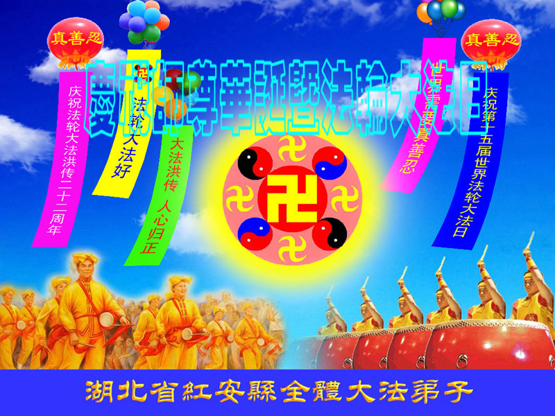 湖北省黄冈市红安县全体大法弟子庆祝师尊华诞暨法轮大法日!