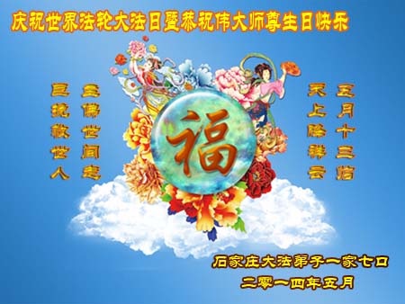 【明慧网二零一四年五月十一日】 河北省石家庄大法弟子普天同庆5.13世界法轮大法日!恭祝师尊生日快乐!