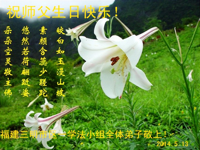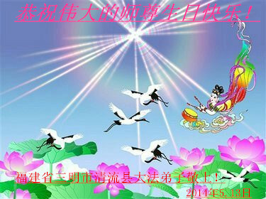 【明慧网二零一四年五月十一日】 福建省三明市全体大法弟子恭祝慈悲伟大的师父生日快乐!