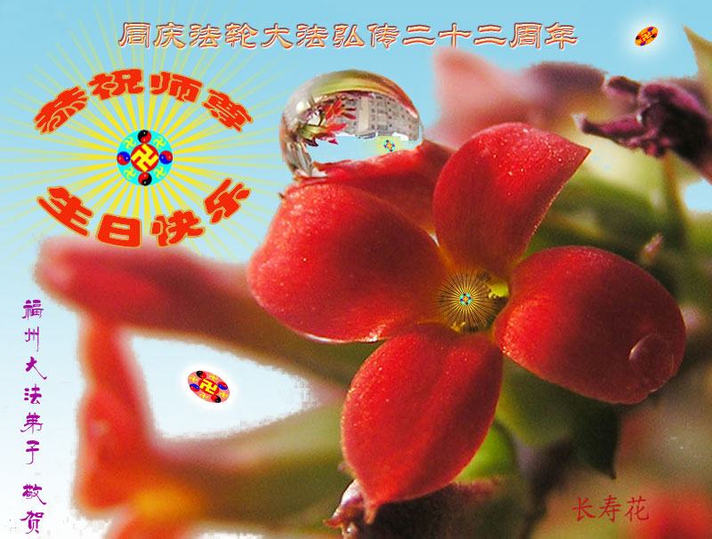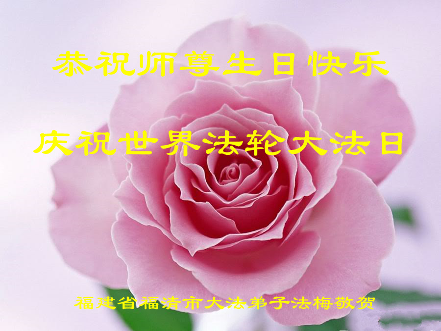 恭祝师尊生日快乐!祝贺世界法轮大法日! 福建省福清市大法弟子法梅敬贺! 福建省福州大法弟子庆贺法轮大法洪传二十二周年,恭祝师尊生日快乐!