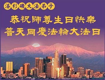 洛杉矶大法小弟子恭祝师尊生日快乐!普天同庆世界法轮大法日暨大法洪传二十二周年!