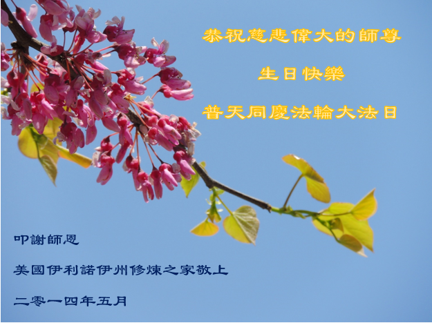 美国伊利诺伊州大法弟子祝伟大慈悲的师尊生日快乐!