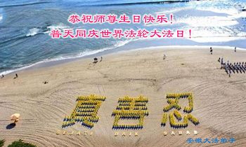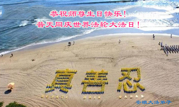 普天同庆世界法轮大法日暨法轮大法洪传二十二周年。我们一定遵照师尊的教诲,整体配合做好三件事,修好自己共同精進,圆满随师还。 安徽省凤台全体大法弟子跪拜 安徽合肥全体大法弟子恭祝师尊生日快乐!