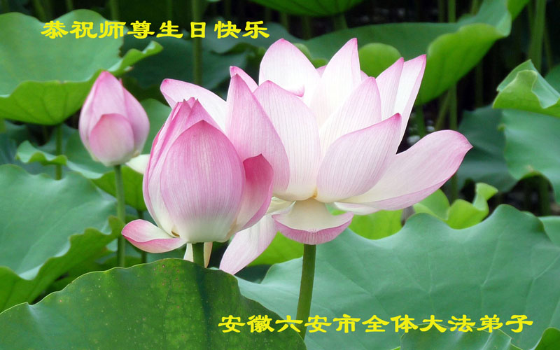 恭贺法轮大法洪传二十二周年!恭贺“五一三世界法轮大法日”! 安徽六安市大法弟子恭祝师父生日快乐!