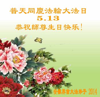 【明慧网二零一四年五月十二日】 安徽安庆大法弟子恭贺师尊生日华诞暨世界法轮大法日!