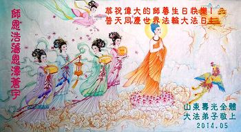 【明慧网二零一四年五月十二日】 山东潍坊大法弟子恭祝慈悲伟大的师父生日快乐!