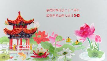 谨以小诗一首表示祝贺,并祝师尊生日快乐!合十! 五月处处开圣花 大法桃李满天下 严冬尽逝春满园 驱散红魔浪淘沙 助师正法救众生 精進法徒无闲暇 完成使命兑誓约 返本归真不虚夸 辽宁省大连市甘井子区大法弟子恭贺师尊生日快乐!同贺5•13法轮大法日!