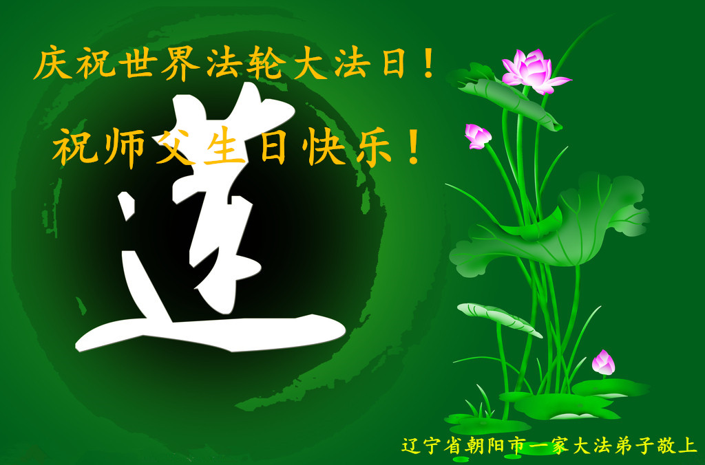 辽宁省朝阳市一家大法弟子庆祝世界法轮大法日!祝师父生日快乐!