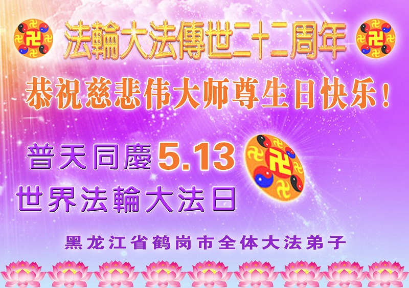 黑龙江鹤岗大法弟子恭祝师尊华诞暨大法洪传二十二周年!