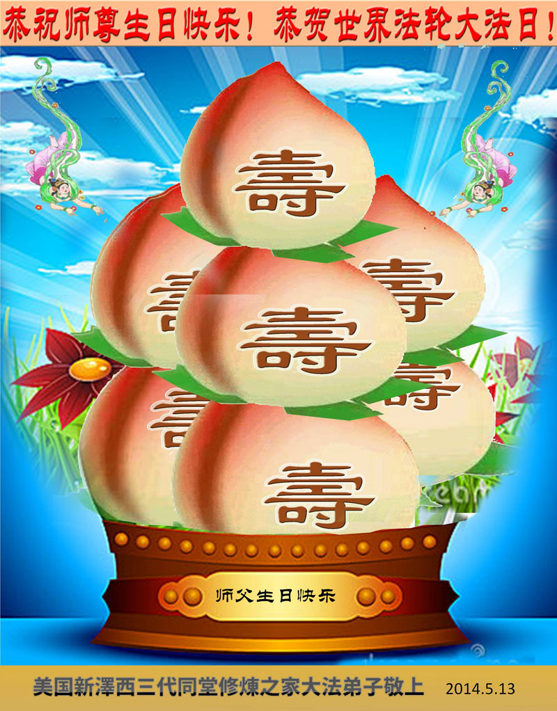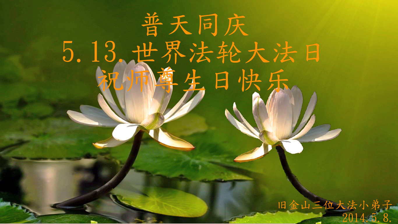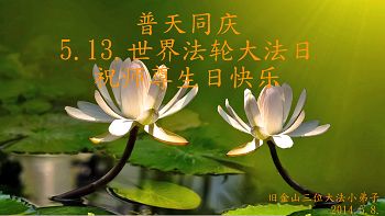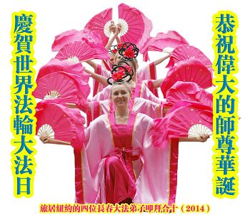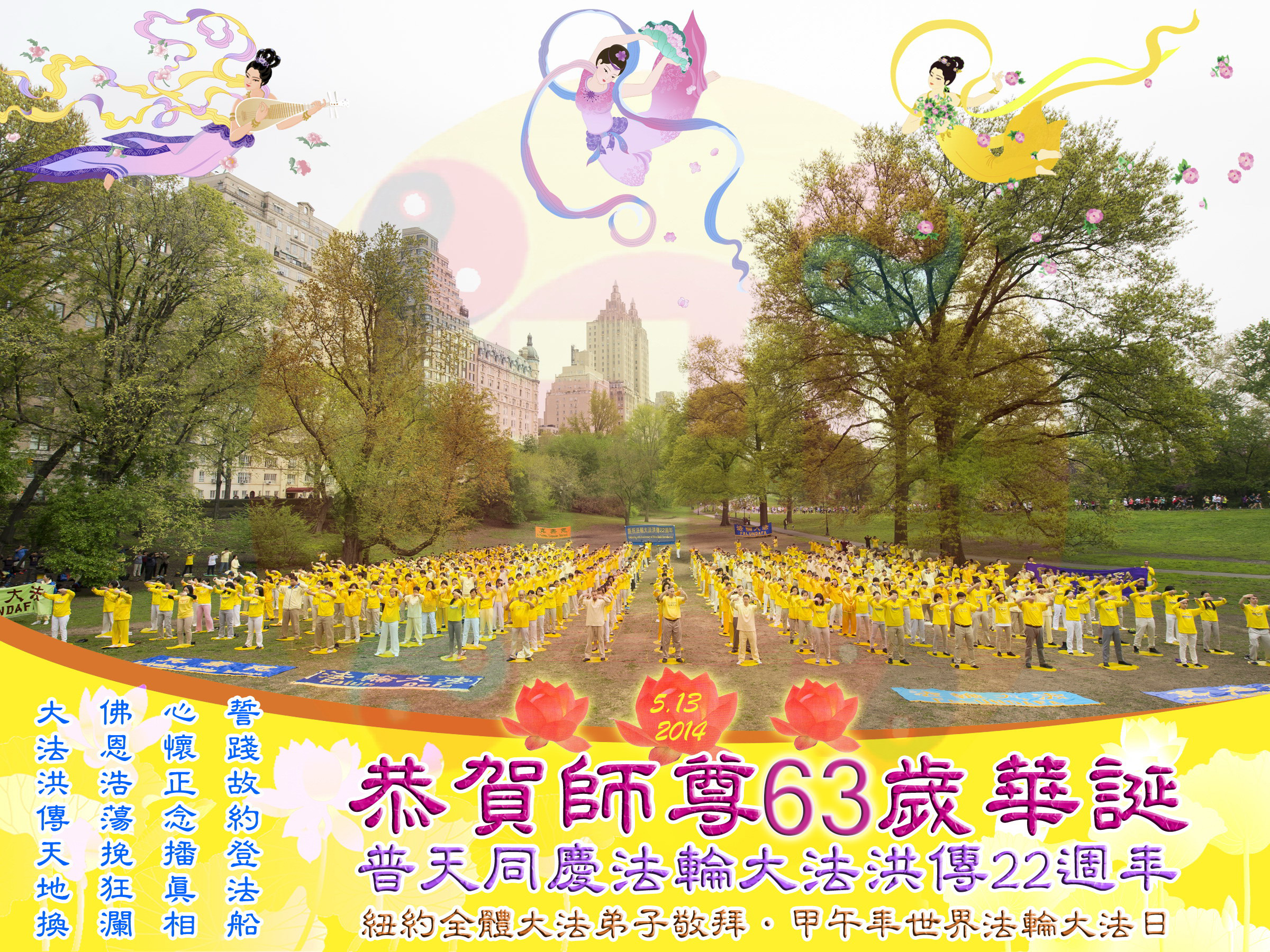 【明慧网二零一四年五月十二日】 纽约全体大法弟子恭祝师尊华诞!普天同庆法轮大法洪传22周年!